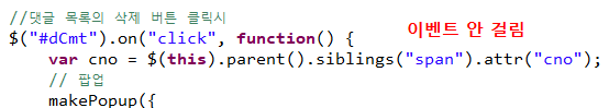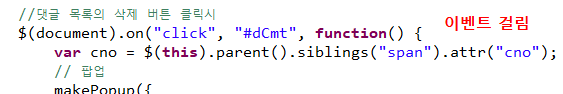 이때 이벤트 붙여주면서 괄호 안에 글 번호를 넣어주었고