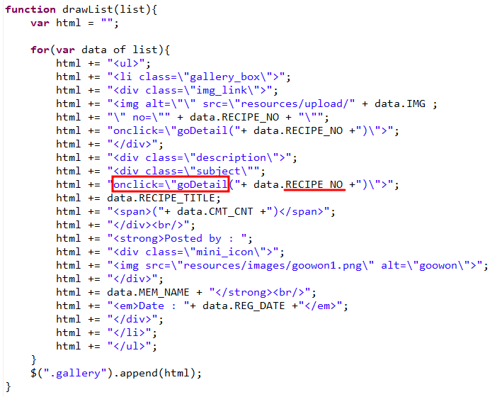 그래서 생각해낸 게 목록을 그릴 때 아예 태그에 이벤트를 붙여주는 것..