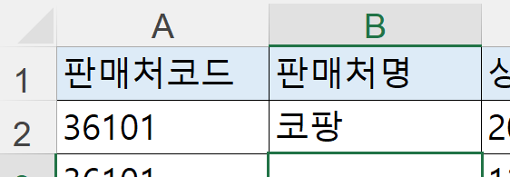 일단 시작하기 전에 판매처코드 데이터가 혹시 텍스트 형식으로 되어 있다면 텍스트 나누기를 써서 숫자 데이터로 만들어준다. 판매처 테이블의 판매처코드 데이터는 숫자 형식이기 때문에 맞춰줘야 한다.