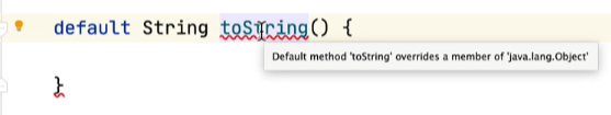 4) Object가 제공하는 메소드는 기본 메소드로 제공할 수 없다. ex) equals, hashCode, toString, ...
