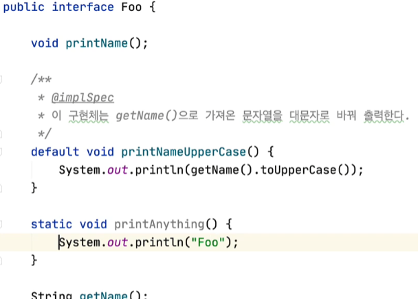 Foo 인터페이스에 있는 스태틱 메소드 printAnything을 호출해서 쓸 수 있다.