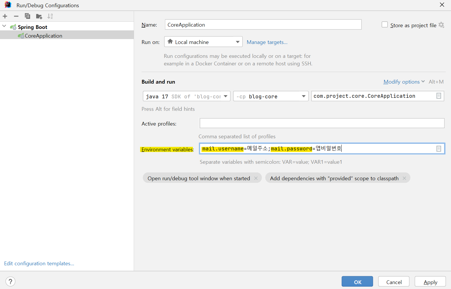 2) application.yml spring.mail.password: 앱 비밀번호 입력