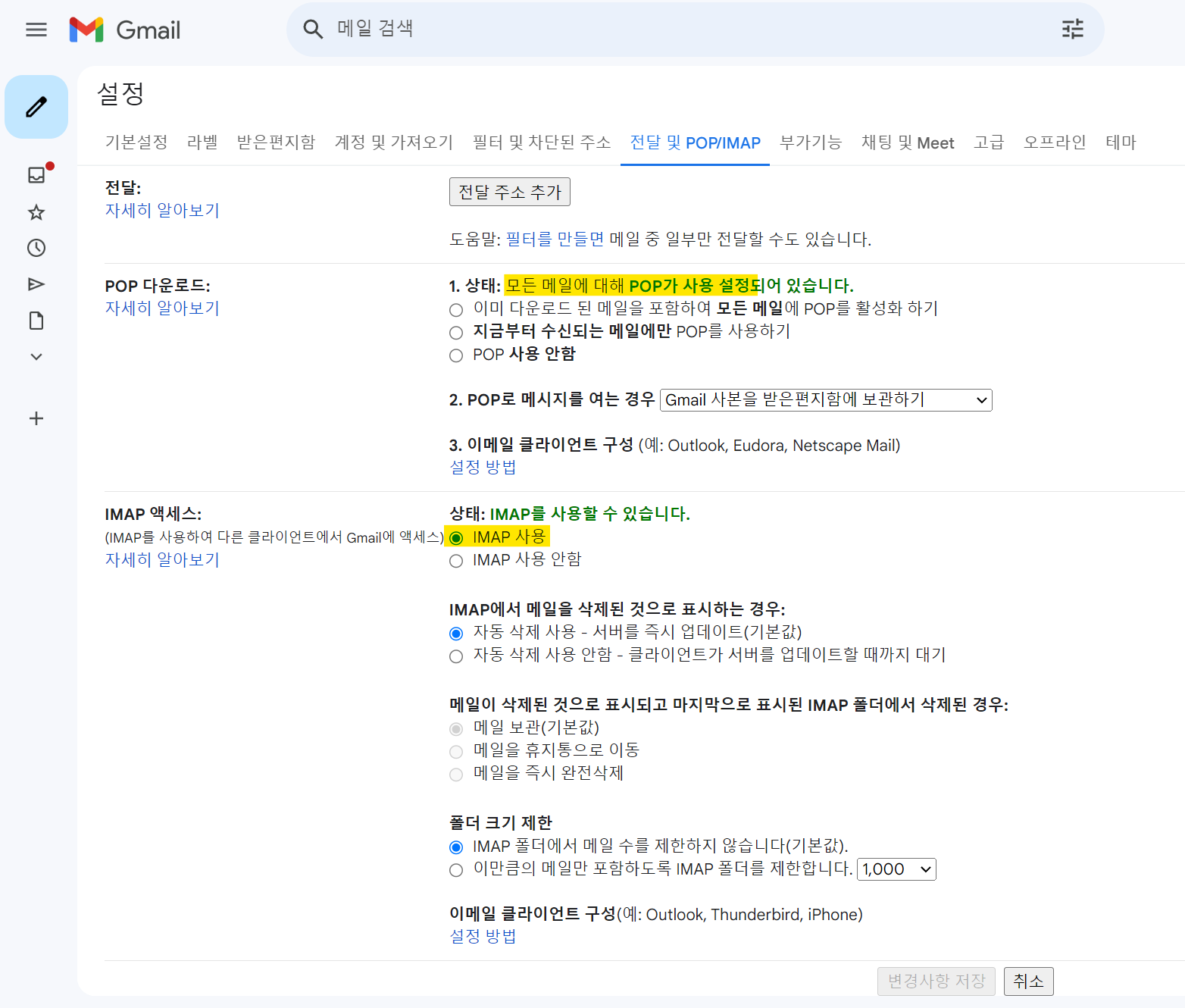 설정 > 계정 및 가져오기 > 비밀번호 변경 → 앱 비밀번호로 교체