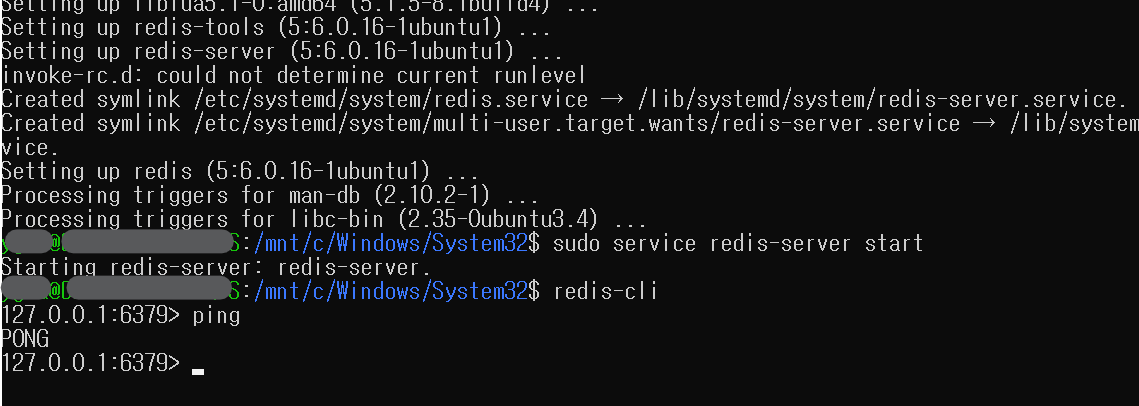 (프롬프트가 127.0.0.1:6379> 로 변경되고, ping 입력하면 PONG 출력됨..)