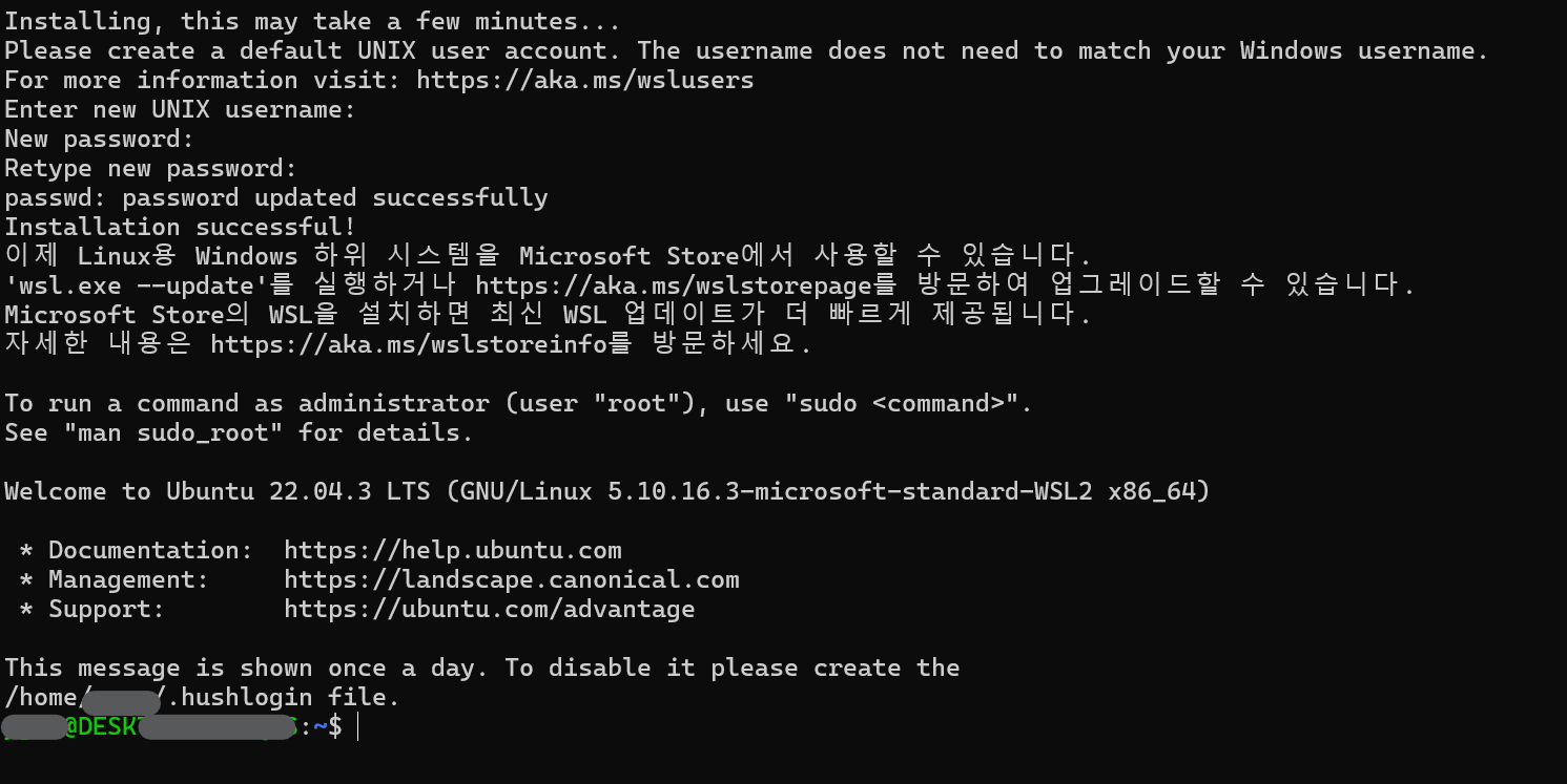 - Enter new UNIX username: 우분투 사용할 닉네임 입력