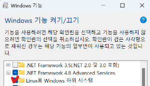 - Linux용 Windows 하위 시스템 = Windows Subsystem for Linux (WSL)