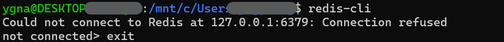 127.0.0.1:6379 안 나오고 not connected로 프롬프트 바뀌면 성공..