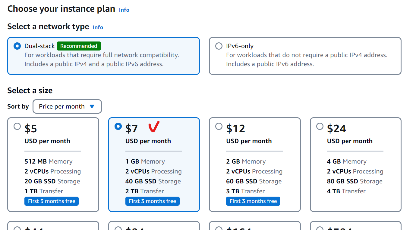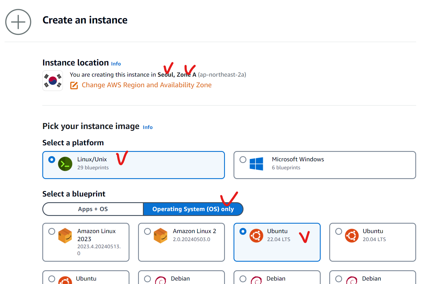 - 메모리 1GB, 가상CPU 2개인 것 선택 (나머지는 크게 중요하지 않음.)