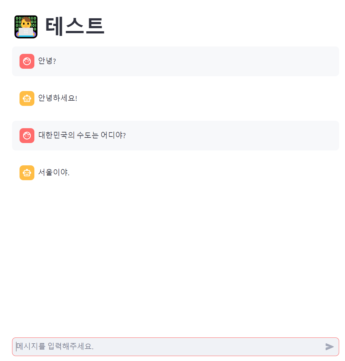 사용자가 메시지를 입력하면 user_input으로 들어오게 되고, if 조건문을 타서 user 아이콘으로 그 메시지를 뿌려준다.