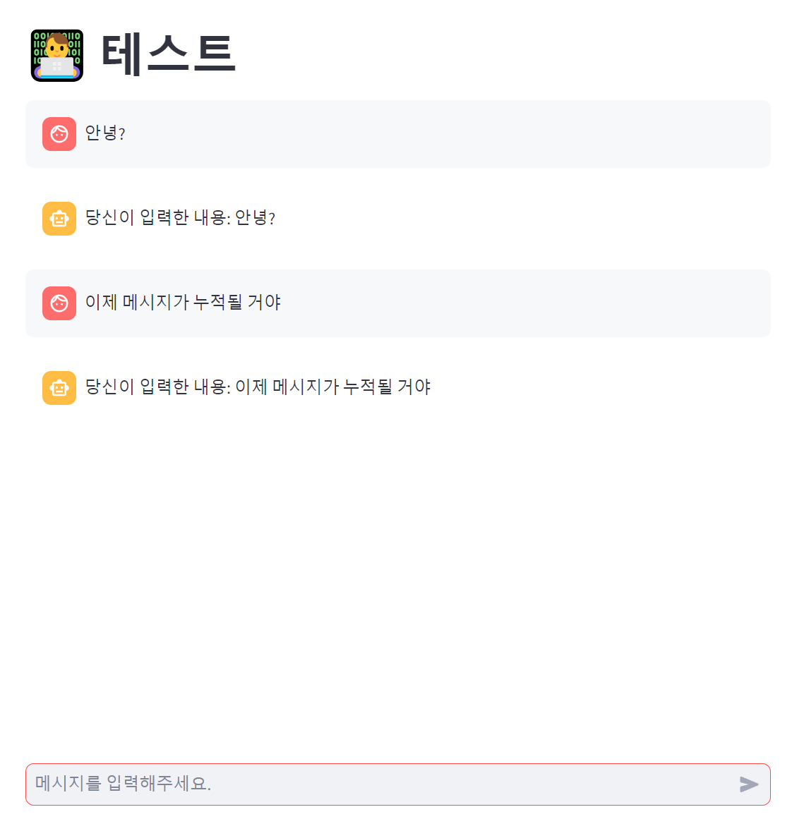 기본적으로 streamlit은 메시지를 입력할 때마다 전체 새로고침(재실행) 되기 때문에 메시지 내용이 교체된다.