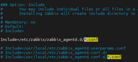 - 아래 Include 옵션 보면, zabbix_agentd.d 폴더 하위 .conf 파일 전부 include 하고 있다. (기본)