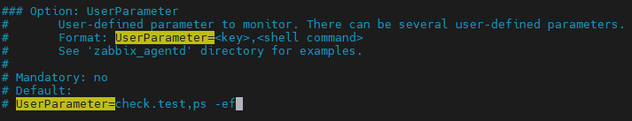 UserParameter=check.test[*],sh /etc/zabbix/zabbix_agentd.d/test_script.sh $1 $2
