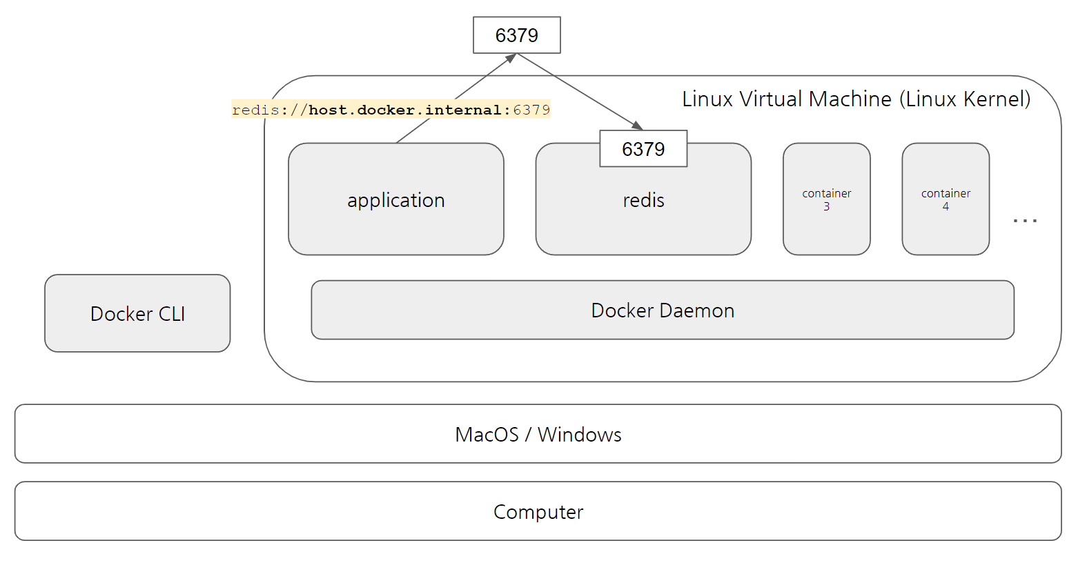 💡 윈도우, 맥의 경우 host.docker.internal 명령어를 이용해서 컨테이너 내부에서 호스트로 접근이 가능하다.