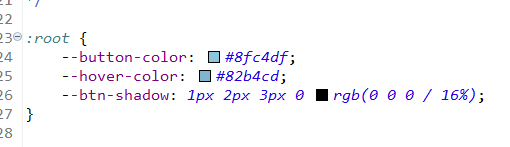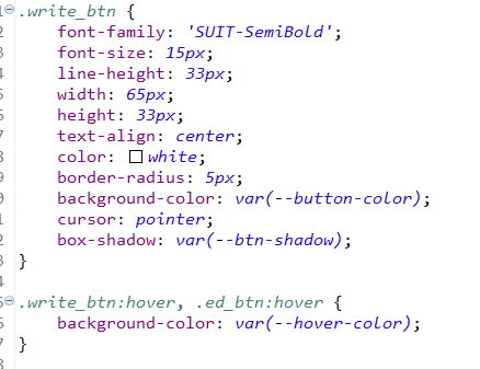 버튼 색상을 싹 갈아엎으면서 색상 헥스코드 하나하나 치기가 번거로웠는데 :root 로 변수 선언해서 쓸 수 있다고 한다. 구글링을 통해 발견함.