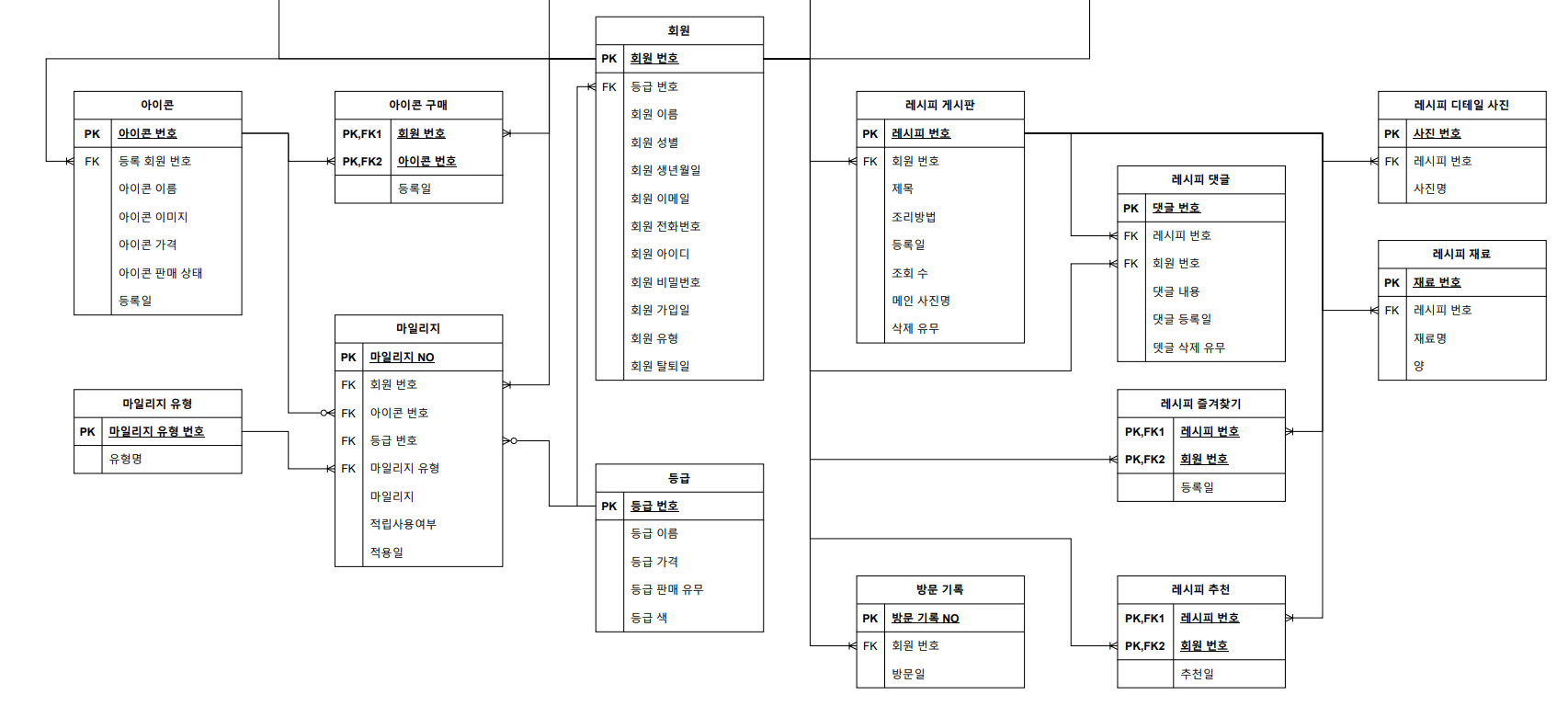 - 데이터에 따라 달라지기 때문에 데이터 먼저 확실하게 정리하고 ERD 마저 할 것.
