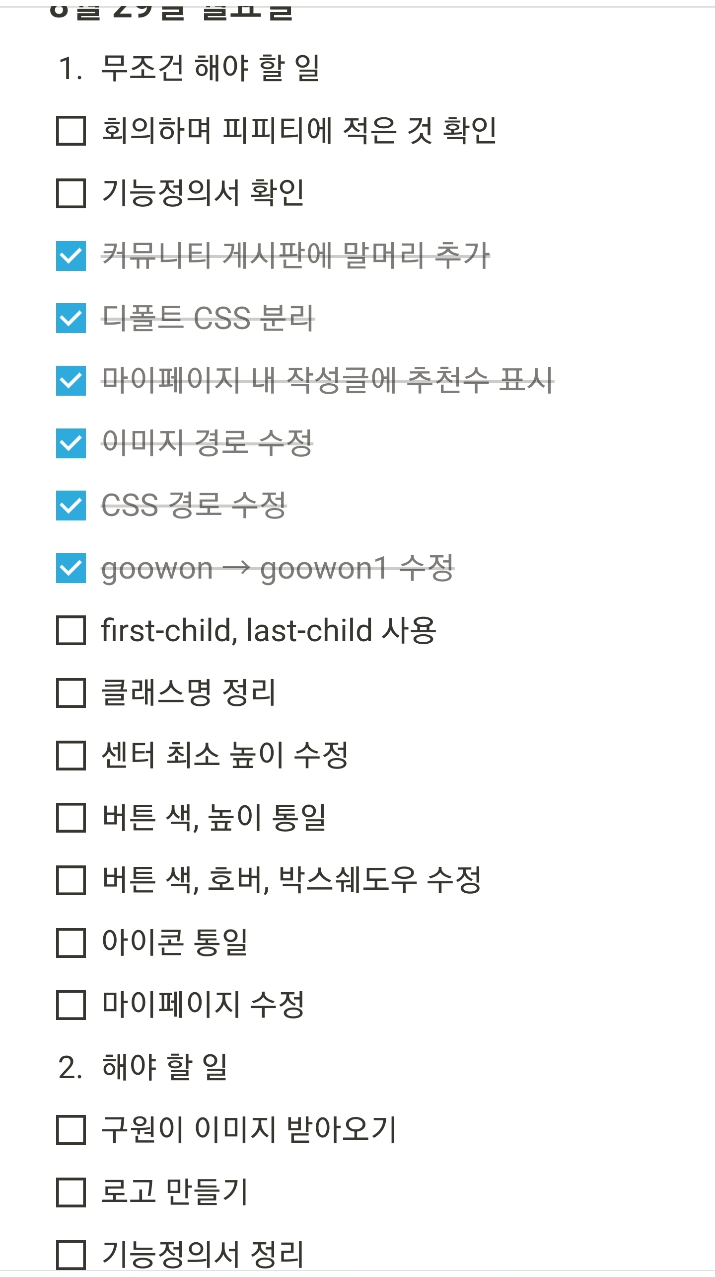 8월 30일 팀프로젝트 일정 (html 끝내기, :root 가상 선택자)