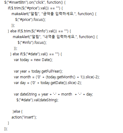 문제대로 디비에는 지출을 0, 수입을 1로 저장해두었는데 이걸 목록에는 '지출', '수입' 문자열로 보여야 한다.
