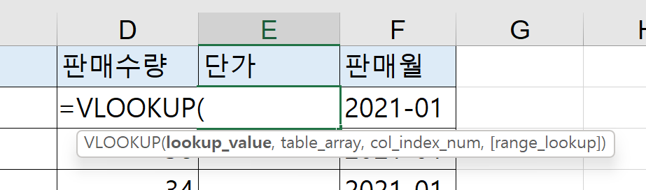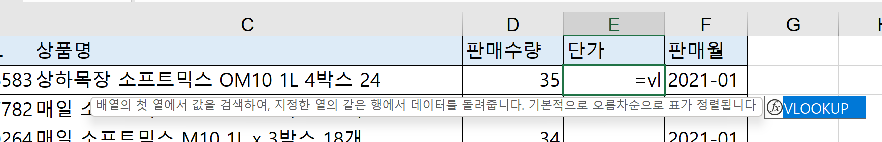 vl만 치고 VLOOKUP이 뜨면 엔터가 아니라 탭을 눌러야 자동으로 입력된다.