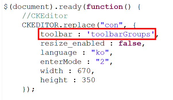 toolbar 이름인 toolbarGroups를 적어주었다.