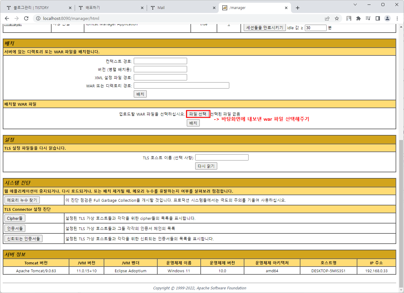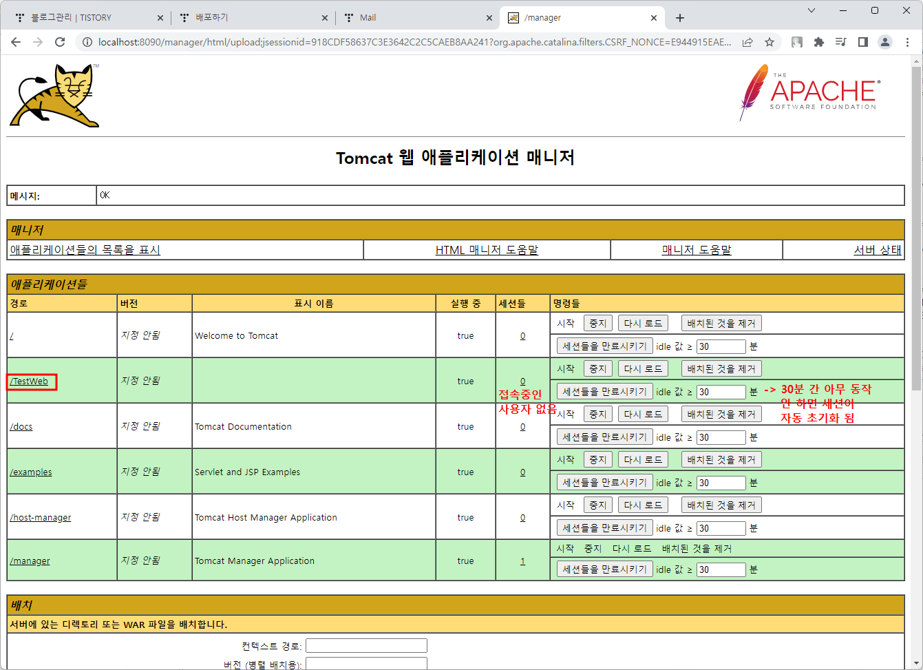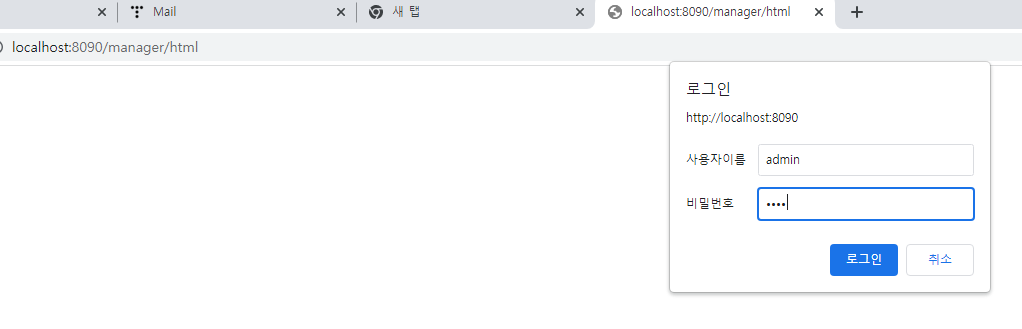 브라우저 창에서 localhost:8090/manager