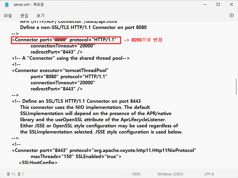 1) server.xml 편집