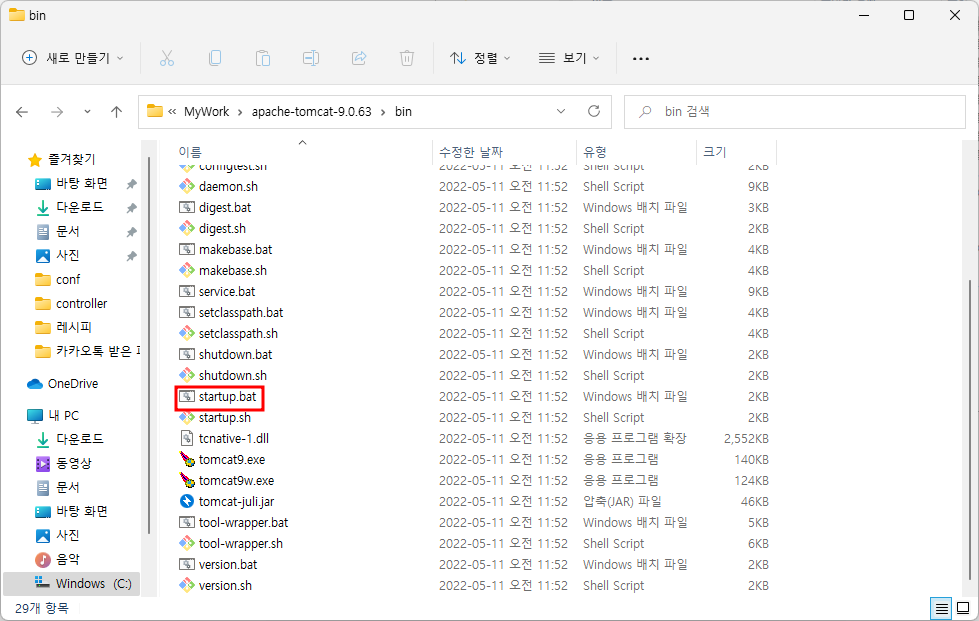 startup.bat 클릭