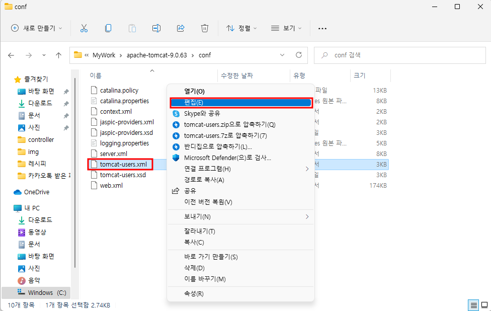 2) tomcat-users.xml 편집