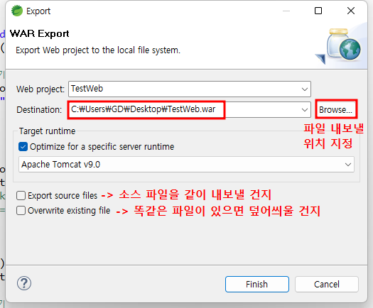 Finish 누르면 내가 지정한 경로(바탕화면)에 war 파일이 생김.
