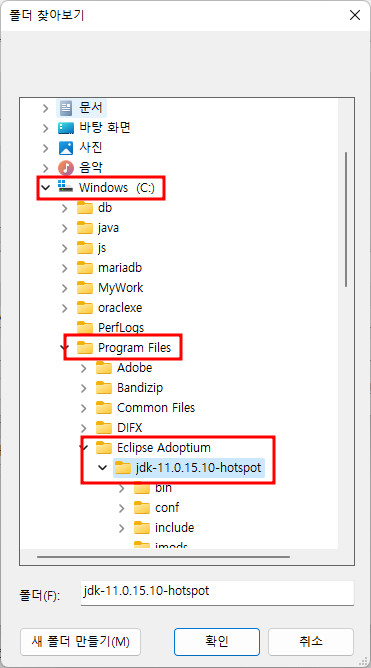 C - Program Files - Eclipse Adoptium - jdk폴더 선택