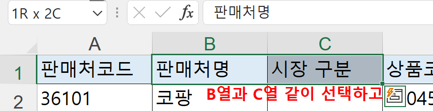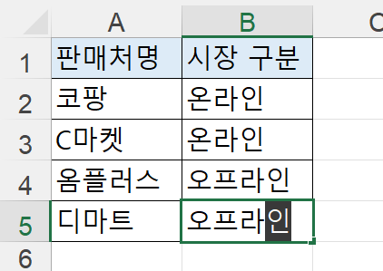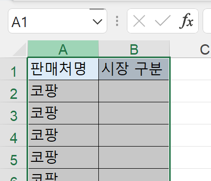 새로 만든 시장구분 시트에 ctrl+v 붙여넣기 한다.