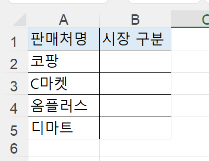 그리고 '시장구분' 시트를 새로 하나 만들어주기로 했다.