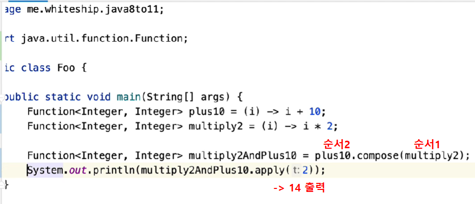 - Function을 상속받았기 때문에 Function에서 제공하는 기본 메소드를 사용 가능 (compose, andThen 등)
