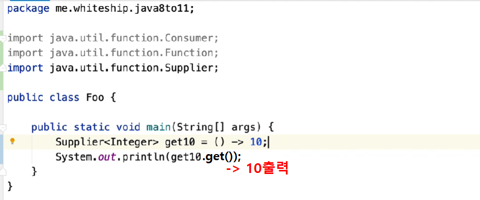 Supplier<Integer> get10 = () -> 10;