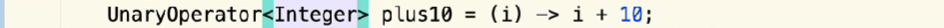 // BinaryOperator<Integer> sum = (Integer a, Integer b) -> a + b;