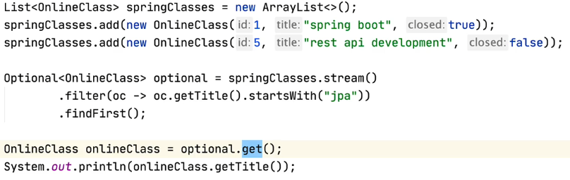 - Optional에 있는 값 가져오기