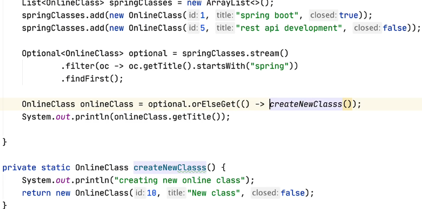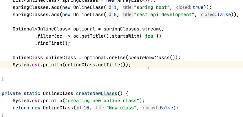 값이 없을 때(jpa)도 있을 때(spring)도 createNewClasss는 실행된다.