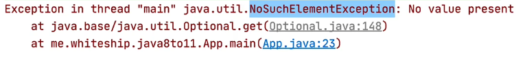 - 만약에 비어있는(null) Optional에서 꺼낸다면?? 런타임 예외 계열인 NoSuchElementException 발생