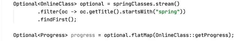 - Optional 안에 들어있는 인스턴스가 Optional인 경우에 사용하면 편리하다.