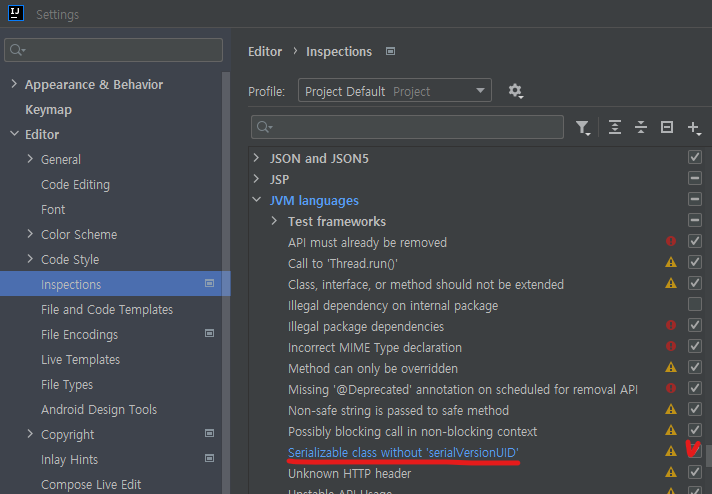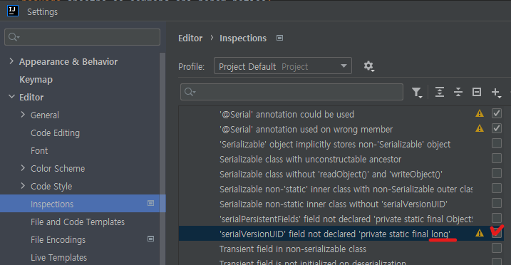 [IntelliJ] serialVersionUID 생성 방법