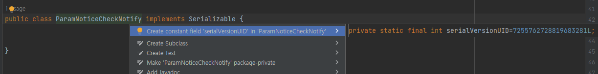 Create constant field 'serialVersionUID' in 어쩌구 클릭